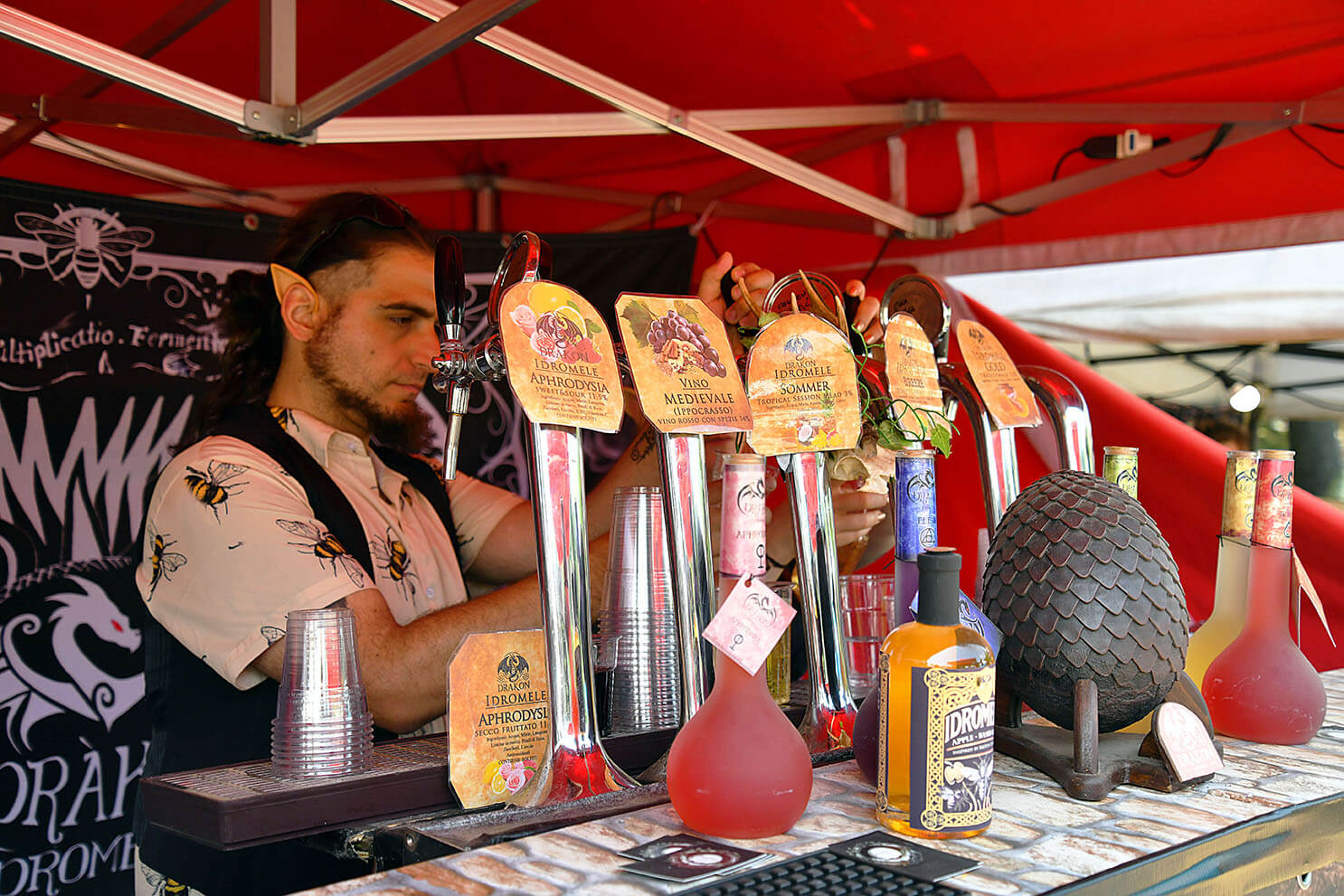 ⚝ Villaggio dei Regali: Artigiani professionisti espongono i loro prodotti manufatti a tema magico. Potrete trovare incensi, erbe, amuleti, rune, saponi naturali, bigiotteria, oggetti in rame, cuoio, terracotta e legno, abbigliamento fantasy, vendita Idromele ed Ippocrasso.